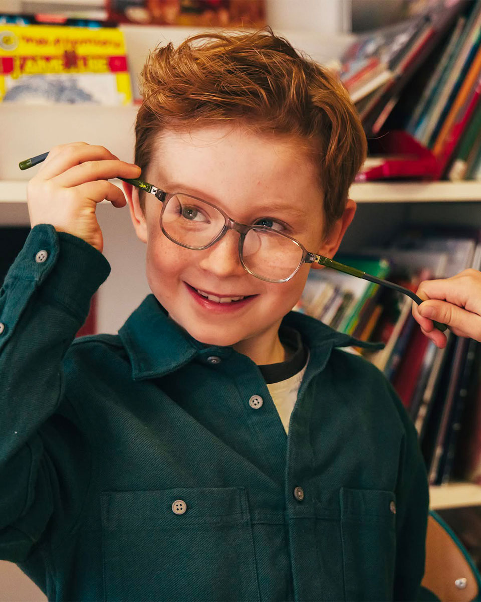 Permet à l’enfant de se sentir à l’aise et fier de ses lunettes.